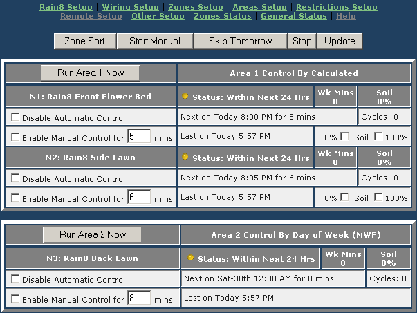 moisture content while the zone in Area 2 is controlled by a Monday,