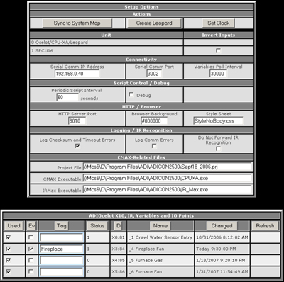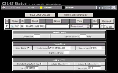 A Browser-based UI is provided to setup the desired operating parameters.